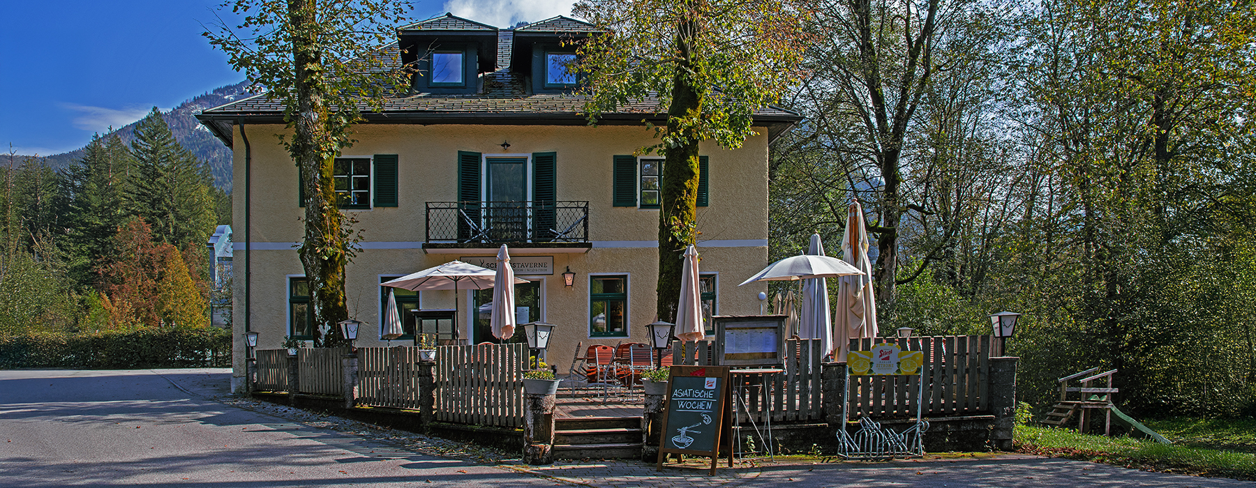 Das im April 2019 von Joschi wiedereröffnete Restaurant macht seinem Namen alle Ehre, denn unser Gaumen wird hier königlich verwöhnt. Nachmittags kehren wir auf einen Apfelstrudel zum Kaffee ein, abends genießen wir Wild-, Fisch- oder Fleischgerichte. Ein Highlight ist der Schweinsbraten, aber auch für Vegetarier gibt es kreative Köstlichkeiten. Bei schönem Wetter sitzen wir auf der Terrasse unter Bäumen, doch das moderne und zugleich gemütliche Ambiente in der Schlosstaverne lädt ebenfalls zum Verweilen ein. Und: Daumen hoch für das freundliche, kompetente Service-Team!